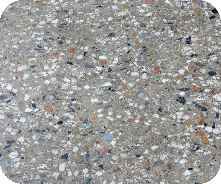 花崗石相較於大理石,質地更加堅硬、抗風化且耐磨性佳,常見於外牆與建築物地板,但其紋理相對樸素。花崗石翻新與研磨流程與大理石類似。使用鑽石研磨片將刮痕與磨損去除,再以不同號數的研磨片進行多層次研磨。為修復其毛細孔,可搭配研磨粉填補,最後以專業藥劑打磨,使花崗石回復光澤並提升耐用性。
