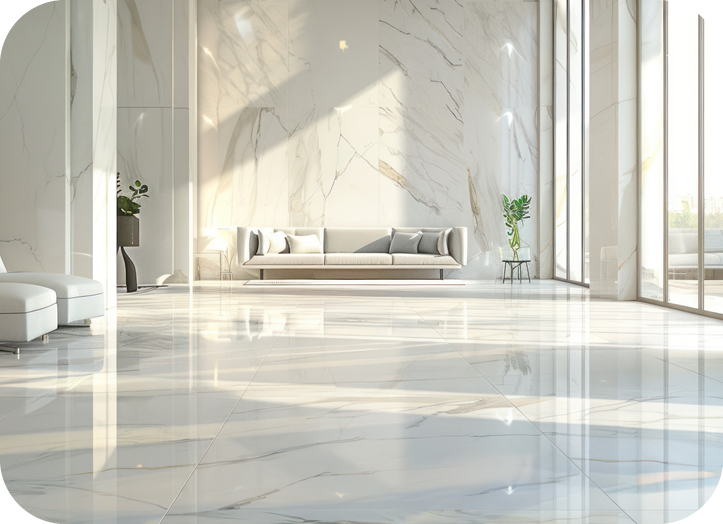 拋光石英磚的清潔系統,去汙+防護二階段清潔保養,有效達到抗磨損與污垢入侵,使磚面光亮持久,延長使用壽命。